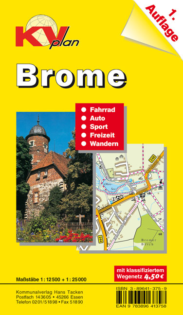 10 Ortsauschnitte der Samtgemeinde Brome (Bergfeld, Brome, Ehra-Lessien, Eischolt, Hoitlingen, Parsau, Rühen, Tiddische, Tülau, Voitze, Zicherie) in 1:12.500 mit Straßenverzeichnis allen Symboleintragungen von Altglascontainern über Apotheken bis zu Kinderspielplätzen.