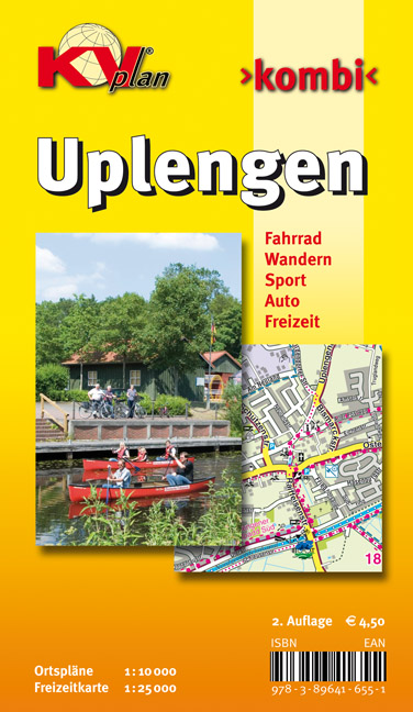 Der KVplan® Uplengen >kombi<niert eine Gemeindekarte mit einer Freizeitkarte. Die Detailkartenseite stellt im Maßstab 1:10.000 die Ortslagen von Bühren, Großoldendorf, Großsander, Hollen, Oltmannsfehn, Remels und Stapel dar. Neben einem Straßenverzeichnis bietet eine umfassende Legende Informationen vom Jugendtreff über den Imbissstand bis zum Seniorenzentrum. Die Gesamt- und Freizeitkartenseite im Maßstab 1:25.000 wurde so gewählt, das auch die Nachbarorte erreicht werden können. Im Süden markiert das Aper Tief mit Filsum, Detern, Augustfehn und Apen die Gebietsgrenze. Im Norden geht es bis Wiesmoor und im Westen bis Hesel. In diesem 482 qkm großen Freizeitgebiet sind 10 touristische Radrouten (u.a. Fehnroute, Ammerlandroute, Heerweg, die Ostfrieslandtouren „Wasser und Weite“ „Gärten und Schlösser“, „Van Dörp to Dörp“ ) dargestellt. Des weiteren ist sowohl das mit grünweißen Schildern ausgeschilderte ortsverbindende Radnetz dargestellt, als auch die 6 Uplengener Radrundwanderwege. Die Legende dieser Kartenseite reicht vom Angelplatz über Einkehrmöglichkeit bis zur Slip-Anlage. Um auch eine Nutzung „per Pedes“ attraktiv zu gestalten finden sich kleinste Pfade, Aussichtspunkte, und der Moor-Erlebnispfad in der Kartografie wieder. Bei der Wegeüberprüfung für die Erstauflage wurde die Nutzbarkeit der Wege festgehalten. Zwischen Fahrwege (für Autos noch erlaubt), befestige Wege für KFZ gesperrt (optimal zum Radfahren) und Fuß-, Feld- und Waldwege (wichtige Verbindung, für Radfahrer aber ungeeignet) wird unterschieden.