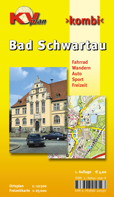 Der KVplan® Bad Schwartau umfaßt eine Detailkarte mit Straßennamen von Bad Schwartau im Maßstab 1:12.500, sowie eine Umgebungsfreizeitkarte (1:25.000), die Lübeck, Travemünde, Timmendorfer Strand und Ahrensbök als Eckpunkte hat. In die Stadtvergrößerung sind alle Bushaltestellen nach Fahrtrichtungen getrennt miteingearbeitet. Alle Radwege und -routen der Region sowie 9 spezielle Wandertourenvorschläge sind aufgenommen.